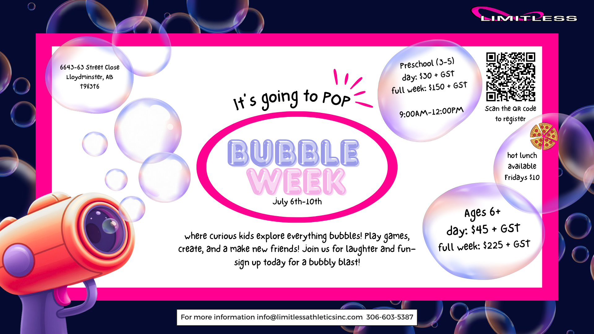 Prepare for a week of bubbly brilliance! Bubble Week is designed for curious kids who want to explore the science and fun of bubbles through hands-on play. This isn’t just a camp; it’s an immersive experience where athletes can create, explore, and make lasting memories in a supportive, high-energy environment.